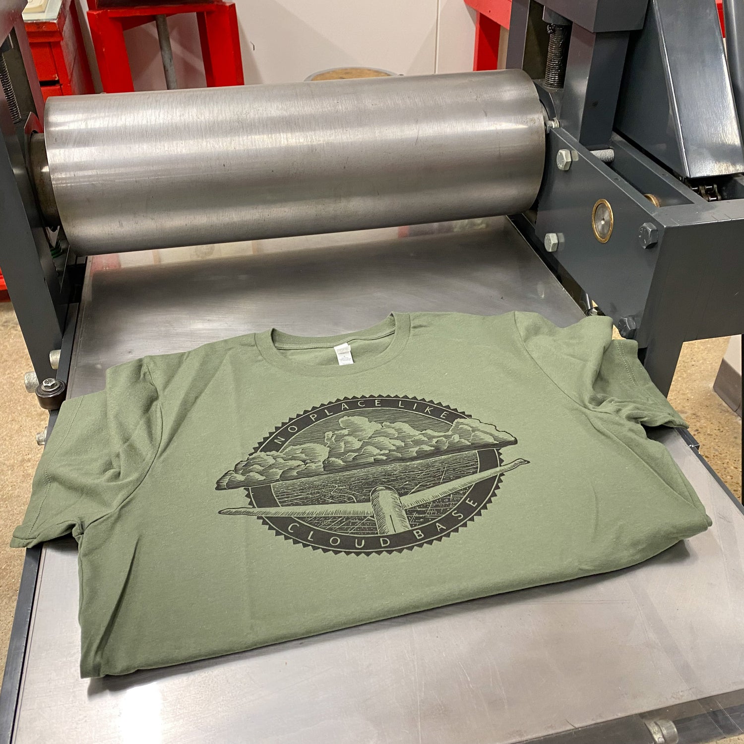 Selecting the t-shirt color and the print color is the final step in the process. These t-shirts are not the final products; they are proofs to ensure the colors are correct. After that, we scan the final paper prints and send them to be screen printed.